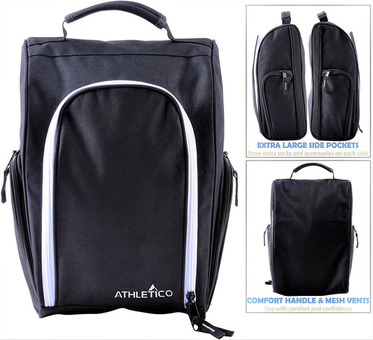 Golf Shoe Bag - Zippered Shoe Carrier Bags with Ventilation & outside Pocket for Socks, Tees, Etc. Perfect Storage (Black)